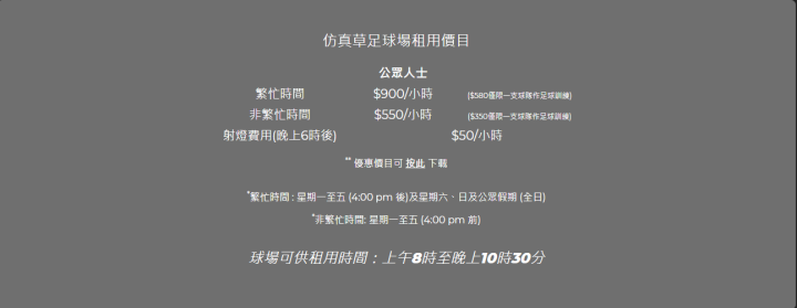 香港足球总会训练中心租赁价格(来源于中国香港足球总会官网)