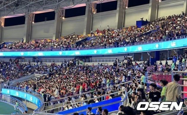 当宋旼奎在上半场第35分钟再进一球的时候,,奏国歌时候的喧闹声甚至都听不见了,宋旼奎甚至把双手放在耳边,示意观众“再大声点”,表现出悠闲的样子来挑衅观众。