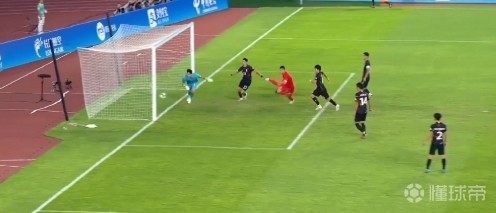 上半场临近尾声阶段,戴伟浚侧身抢点错失进球,他的头球攻门打在了门柱上……