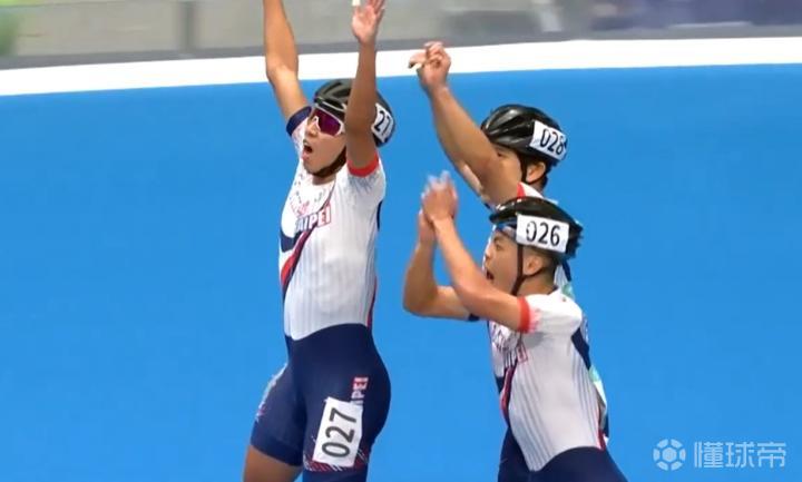 而身后的中国台北选手最后时刻极限加速并尽全力压线,最终奇迹般完成逆转。