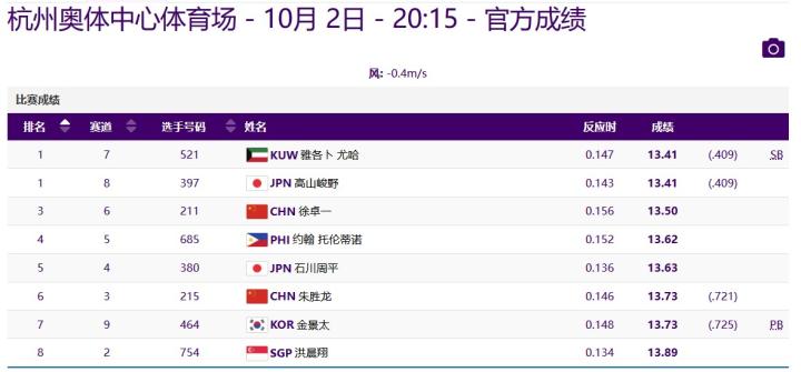 少见!科威特选手和日本选手一同获得亚运110米栏金牌ZeroTsu_02 @懂球帝2023-10-02 21:41北京时间10月2日,亚运会田径项目,男子110米栏决赛,科威特选手雅各卜尤哈和日本选手高山峻野一同登上冠军领奖台,中国选手徐卓一获得一枚宝贵的铜牌。在与亚运会田径项目男子110米栏的比赛中,科威特选手雅各卜尤哈和日本选手高山峻野一同以13.41的成绩获得金牌,中国选手徐卓一获得铜牌。展开更多