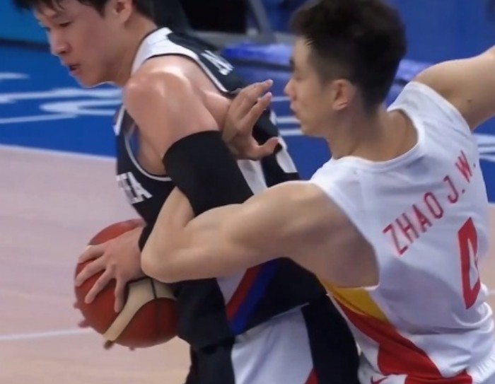 第三节,韩国队进攻有所回暖展开反扑,好在中国男篮胡金秋连续内线得分回应保持20分上下领先,后半节赵继伟被韩国队员夹臂引发双方冲突,随后持续混战拉锯,三节结束,中国男篮66-45韩国。