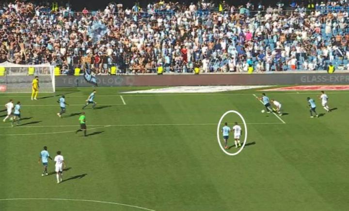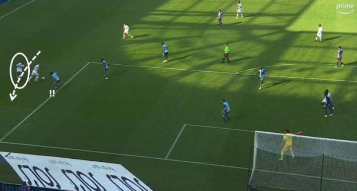 勒阿弗尔必须预见到这个球可能传给迪亚基特,迪亚基特将在无人防守的情况下传中。热格罗瓦完美地利用了这半秒走神的时机,重新将球调整到左脚,并把球传向了远门柱的卡瓦莱罗,打进了第2球。