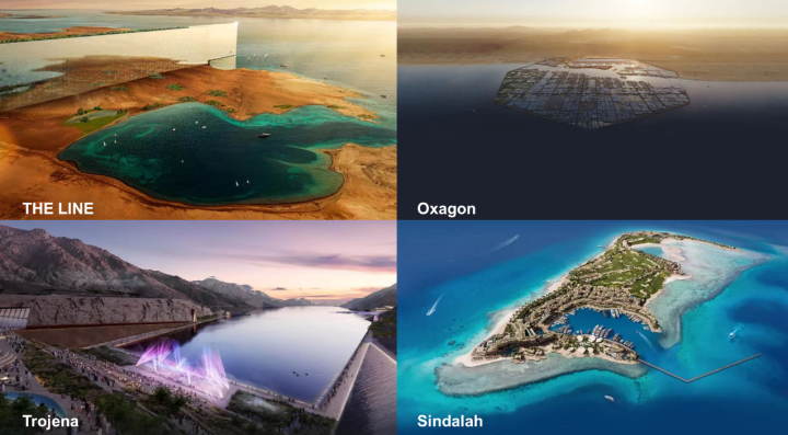 此外,堪称“现代金字塔工程”的未来之城NEOM也不得不提,该项目由线性城市THE LINE、未来产业园Oxagon、山地旅游小镇Trojena和豪华游艇度假岛Sindalah四部分组成。进度最快、难度最小的Sindalah预计今年底竣工开放,其他三个天方夜谭般的项目则进度缓慢。沙特已获得2029亚冬会举办资格,相信预计作为主办场地的Trojena不会太远了。