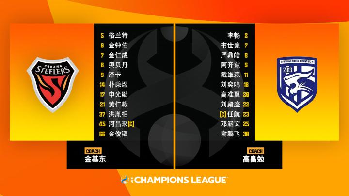 北京时间10月4日18:00,在2023-2024赛季亚冠联赛J组小组赛第2轮中,武汉三镇奔赴客场浦项钢园球场,挑战韩国K联赛劲旅浦项铁人。赛前,亚冠官方公布了两队的首发名单。