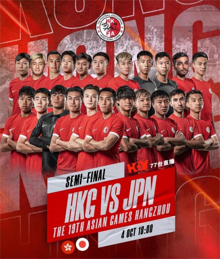 北京时间10月4日晚,在杭州亚运会男足半决赛中,中国香港队迎战日本队。赛前,两队首发名单公布。