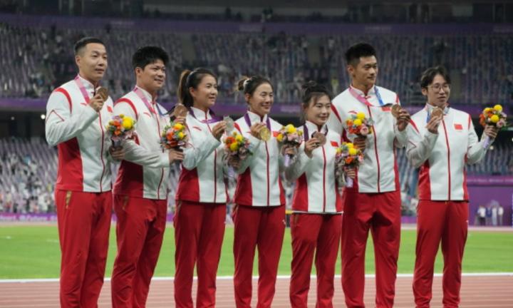 在杭州亚运会田径项目比赛结束后,中国奥委会为7名中国运动员苏炳添、谢震业、吴智强、汤星强、切阳什姐、刘虹、吕秀芝举办了递补奥运奖牌仪式。