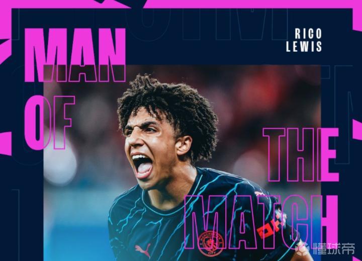 助攻+造5次机会,曼城官方:里科-刘易斯当选全场最佳球员