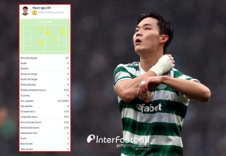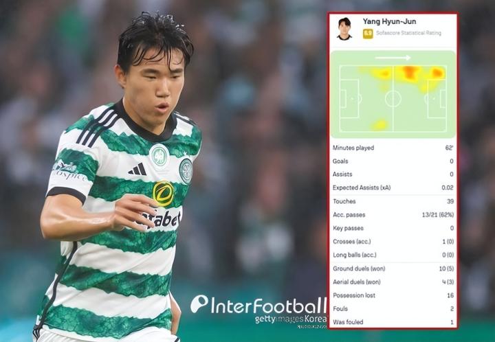10月4日晚,2023-24赛季欧冠联赛继续进行。在E组的一场比赛中,凯尔特人主场1-2遭遇拉齐奥逆转,两战皆负排名垫底。本场比赛,凯尔特人的两名韩国前锋梁铉俊和吴贤揆都获得了出场机会。以左边锋首发的梁铉俊第62分钟被换下,他在场上的时间里2次成功突破,传球成功率为60%,成功抢断5次,3次成功抢下头球。虽然梁铉俊格外卖力,但他的队友表现却很拉跨,屡次浪费他拼下来的“好球”,梁铉俊也只能徒增奈何。