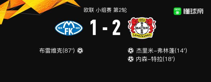 勒沃库森2-1莫尔德取欧联两连胜,弗林蓬破门,特拉建功