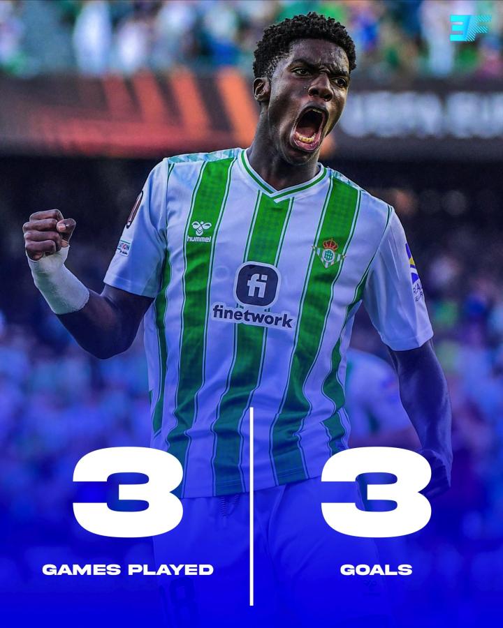 皇家贝蒂斯在九月的5场各项赛事中,有四场比赛都没能取胜,但是在九月的最后和十月的初始,第7和第8轮的西甲联赛,以及欧联杯小组赛第二轮首发球员迎来新任右边锋,B队小将——18岁的阿萨内-迪奥。这是他征战西甲联赛的第一个赛季,但是想不到的是他在首秀对阵格拉纳达,第二场对阵瓦伦西亚,以及第一次欧联杯首发对阵布拉格斯巴达的比赛都打进进球,并且这三场比赛都打进的第一粒破僵局的进球。