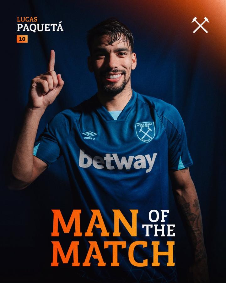 西汉姆联50次出场✅ 完成破门⚽️ 本场比赛全场最佳🏅 帕奎塔愈发珍贵