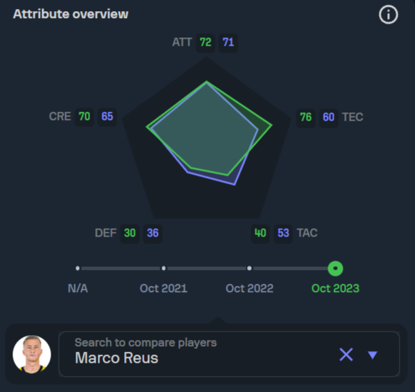 菲里希(绿)与罗伊斯(紫)本赛季能力值比较