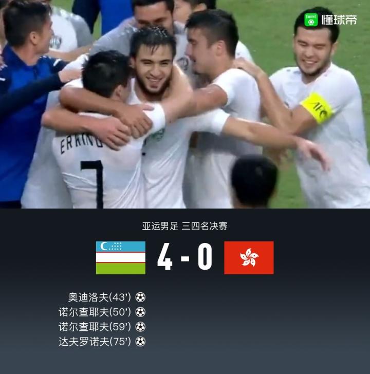 亚运男足季军赛:中国香港0-4遭乌兹别克斯坦三杀无缘奖牌