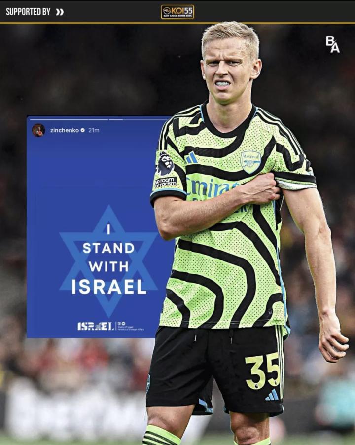 阿森纳球员津琴科在社交媒体上表达自己对以色列的支...北伦敦小酒馆 @懂球帝2023-10-08 11:43阿森纳球员津琴科在社交媒体上表达自己对以色列的支持! 该动态现在已经被删除,阿森纳一贯做法是足球远离政治,津琴科可能会受到对内惩罚!展开更多