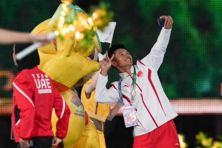 谢震业作为中国代表团闭幕式旗手入场
