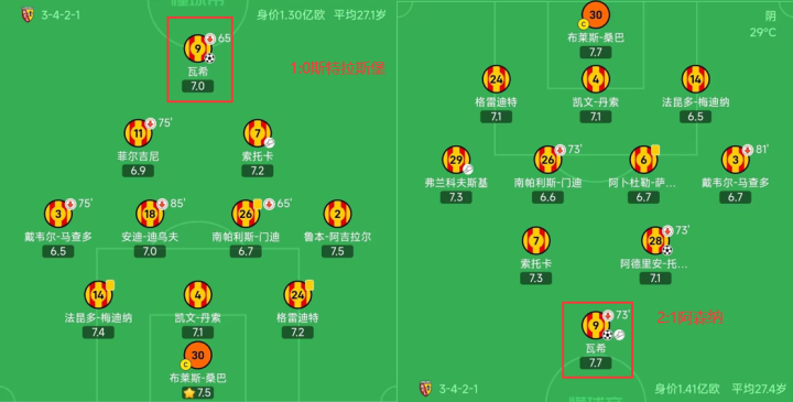 我们前面提到过,朗斯从赛季初的低迷,到现在起势,就是磨合成功的体现。近期两场连胜,觉醒的瓦希参与了球队的全部进球,而再往前看,这三连胜的第一场,替补登场的瓦希也贡献了一个助攻。