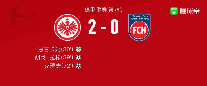 法兰克福2-0海登海姆,克瑙夫破门,胡戈-拉松建功