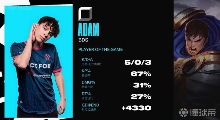 第6分钟,BDS拿到峡谷先锋,GG上野阵亡,Adam鳄鱼收获双杀。