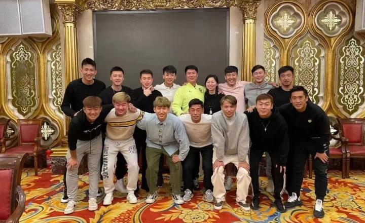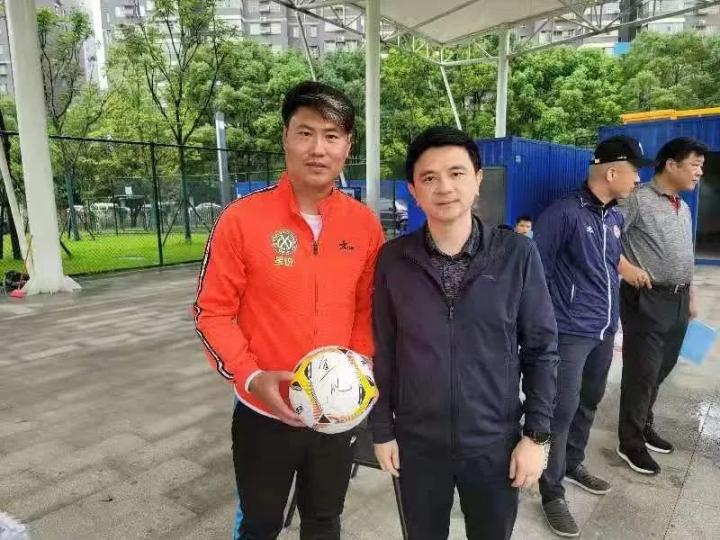 (滕仁军和自己的青训队员再聚首)
