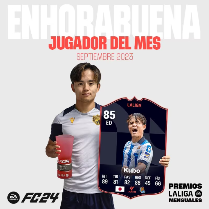 久保建英还获得了西甲9月最佳球员的殊荣,成为西甲历史上第一位获得月最佳的日本球员。