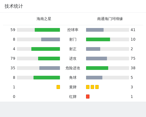 北京时间10月09日中乙 保级组 第6轮,海南之星主场对阵南通海门珂缔缘。海南之星张振阳破门,张辉梅开二度。南通海门珂缔缘季桑楠破门。最终比分3-1。