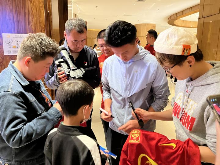 签名合影环节,大家拿出早早准备好的球衣和照片。国脚们丝毫没有推辞,对于合影、签名的要求一一满足,让球迷们带着喜悦归去。