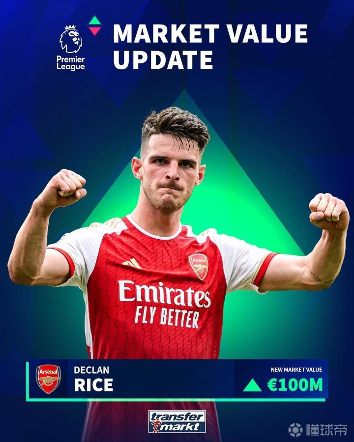 德国转会市场网站英国区经理Daniel Busch表示:“在以创队史纪录的费用转会到阿森纳后,赖斯很快就适应了新环境,并可靠地履行了他的领袖职责,加上同样身价上涨1000万欧的曼城中场罗德里,英超联赛现在有五名球员的身价突破1亿欧元。”