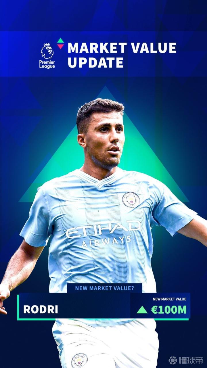 英超联赛是今年秋天五大联赛第一个德转身价得到更新的联赛,作为全球身价最高的联赛,英超又有两名球员突破1亿欧元大关,分别是德克兰-赖斯和罗德里,至此,全球范围内已有13名球员的身价达到1亿欧。