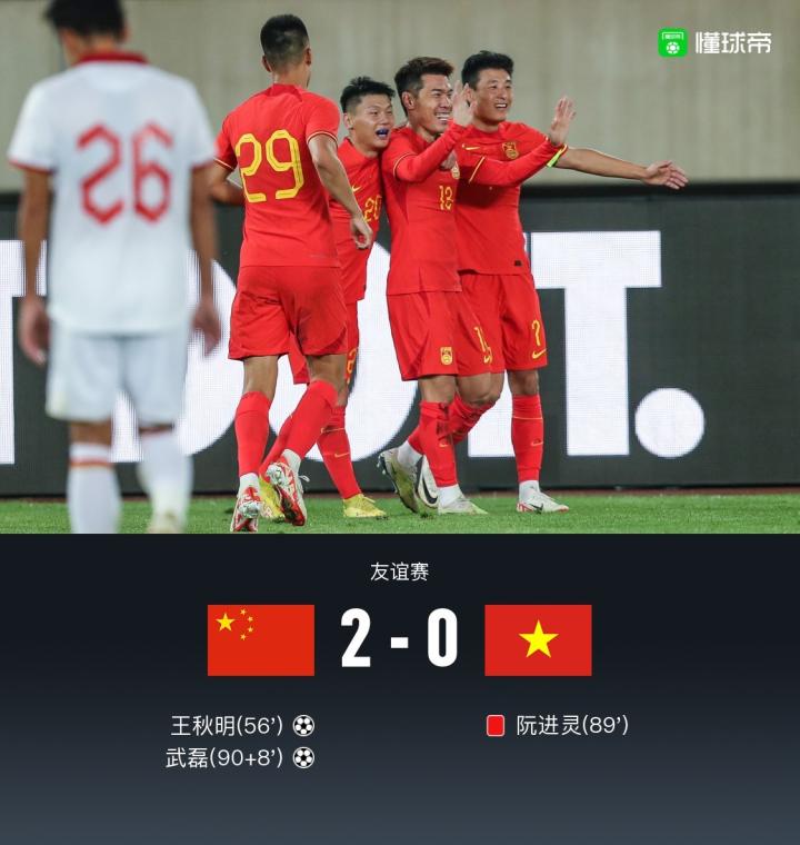 北京时间10月10日19:35,2023CFA中国之队·大连国际足球邀请赛在大连体育中心体育场展开角逐,国足对阵越南。上半场,范俊海一条龙突破国足防线卧射造险,谭龙头槌中柱,颜骏凌出击化解阮文全半单刀。下半场,刘洋助攻替补登场的王秋明凌空垫射破僵,斩获国家队生涯处子球;阮进灵肘击蒋光太被直红罚下;武磊读秒单刀破门锁定胜局,以31球追平柳海光,并列成为国足历史射手王。最终,国足2-0复仇越南。