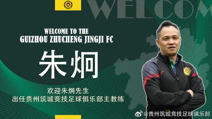 官方:朱炯出任贵州筑城竞技足球俱乐部主帅;该队今年刚创立
