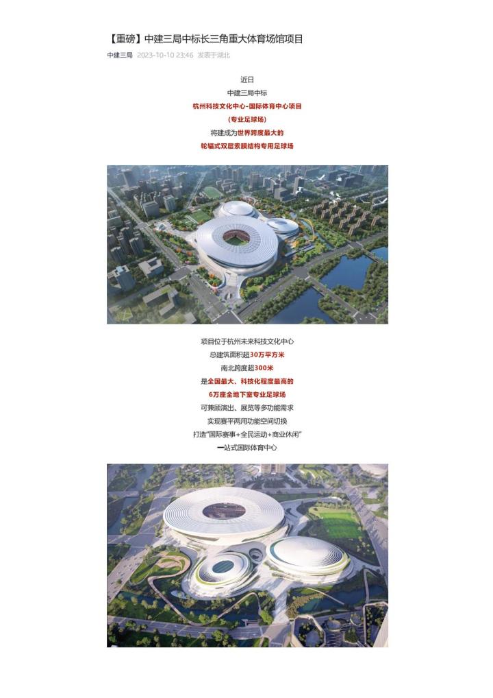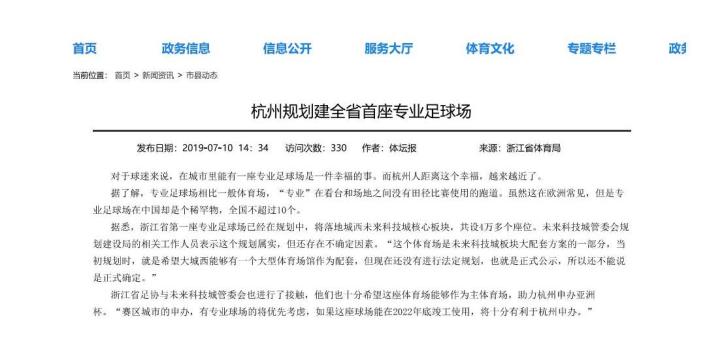 杭州未来或迎来专业足球场据中建三局微信公众号报道...