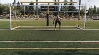 相比同侧脚,异侧脚发力使门将的半边身体处在滞空状态,而不是迅速地倒向地面,缩小了身体覆盖面积。