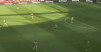 对阵阿森纳的第一个丢球,奥纳纳的横移又显得过于缓慢。当禁区左半扇的厄德高接球打门时,奥纳纳甚至才勉强移动到球门中央,整个球门左侧处于完全不设防的空白状态。