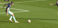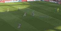 本赛季更多时候,奥纳纳的出球,都像是“为了在后场倒脚和炫技而出球”,很少有发起出球改变进攻局面的实际作用,更多是像下图所示,一脚向前长传直接交换球权。