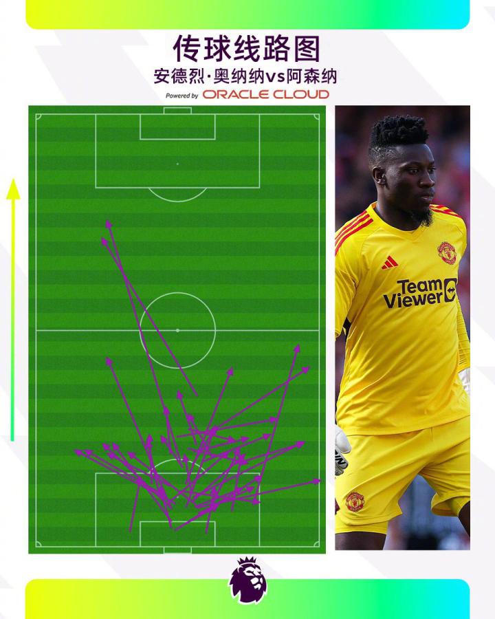 对阵阿森纳的比赛中,奥纳纳42次成功传球,创造了英超有统计数据以来,曼联门将单场的成功传球纪录,但是如此多的传球,却并未对曼联的进攻创造对应的积极影响。