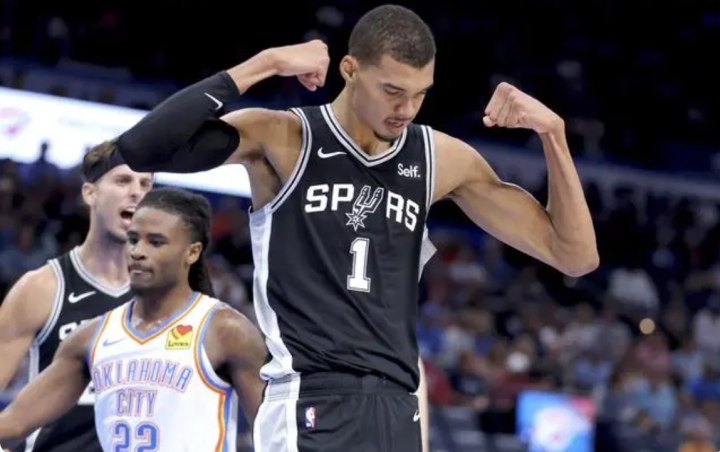 文班亚马和霍姆格伦的比赛堪称火星撞地球。霍姆格伦出战16分钟,10投7中,其中三分球2投2中,罚球7中5中,得到21分9个篮板。霍姆格伦上赛季因为受伤,一场没打,枯坐了整个2022-23赛季,2023-24赛季才算是他的菜鸟赛季。两位未来之星的对抗,预示着NBA的未来。