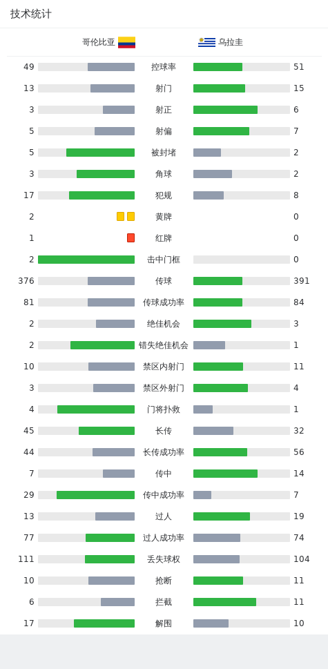 北京时间10月13日南美预选 小组赛 第3轮,哥伦比亚主场对阵乌拉圭。上半场,乌里韦劲射稍偏,佩利斯特里抽射被挡,阿里亚斯助攻,J罗停球后凌空打门入网;下半场,马蒂亚斯-奥利韦拉替补头球破门扳平比分,J罗被动助攻乌里韦破门,迪亚斯单刀机会将球踢飞,哥伦比亚两次攻门均被门框拒绝,阿劳霍爆射稍稍高出,最后时刻巴尔加斯两黄变一红+送点,努涅斯主罚命中绝平,德拉克鲁斯精彩过人后低射擦柱而出。最终比分2-2。