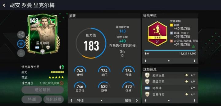 里克尔梅是足坛历史最具想象力的中场大师之一。创始俱乐部传奇版本里克尔梅配备了艺术家天赋,对他的组织能力以及得分能力都有一定的增强。实战中,里克尔梅的传接球稳定,外围的远射威胁十足。