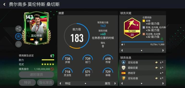 莫伦特斯是辉煌的斗牛士军团队史最强前锋之一。创始俱乐部传奇版本莫伦特斯配备了强力锋霸天赋,对他的得分效率和对抗同样有很大提升。实战中,莫伦特斯的终结能力稳定,能突擅射能适应多种打法。