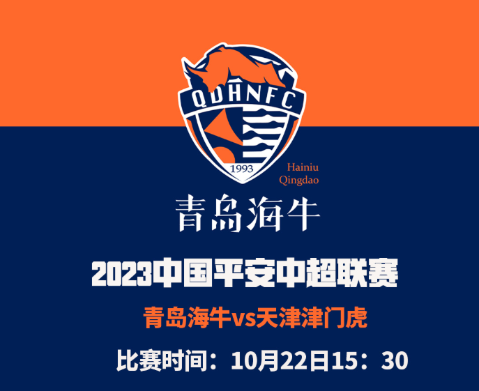 10月22日(星期天)15:30,在2023赛季中超联赛第28轮,也就是倒数第3轮的一场较量中,青岛海牛将坐镇主场青岛青春足球场,迎战天津津门虎。10月13日,青岛海牛提前9天就发布了此役的票务信息。