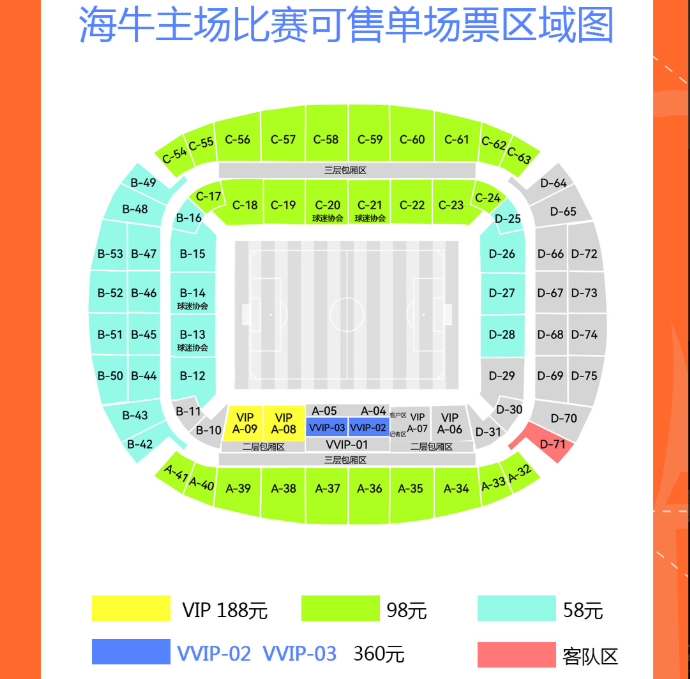 根据票务公告,这场比赛的球票还是分为4个档次,对应票价分别为:58元、98元、188元、360元。球票将从10月16日(星期一)15:30开始发售。