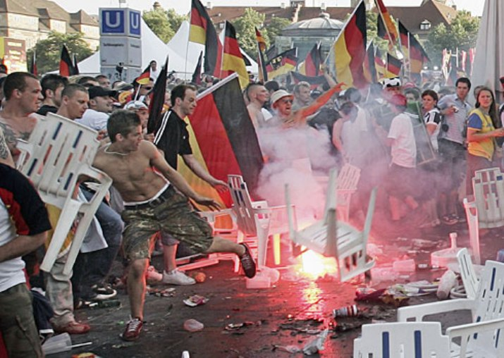 一直以来,德国的足球流氓都以“凶狠”著称,1998年世界杯,他们甚至殴打警察,发生了法国宪兵尼维尔被打成重伤的惨剧。但是在2006年的本土,他们见识到更狠更无情的群体——英格兰太太团。