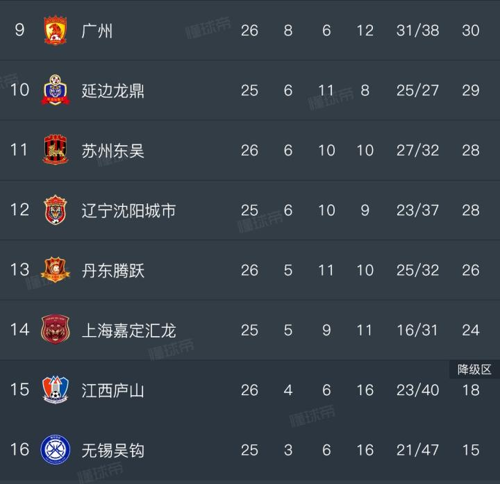 本轮比赛客场3-2击败江西庐山后,广州队26轮联赛取得8胜6平12负的成绩,积30分排名第九,领先降级区的江西庐山12分,领先少赛一场排名垫底的无锡吴钩15分,基本保级成功,除非广州队最后4轮全败且无锡吴钩五连胜。