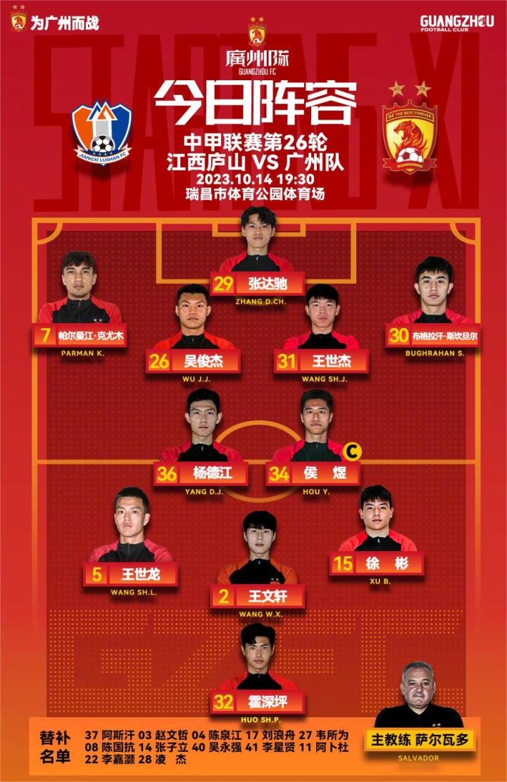 广州队主帅萨尔瓦多依然安排全华班出战,侯煜担任队长,霍深坪司职门将,王世龙、王文轩、徐彬、杨德江、王世杰、吴俊杰、帕尔曼江、布格拉汗、张达驰同时登场。