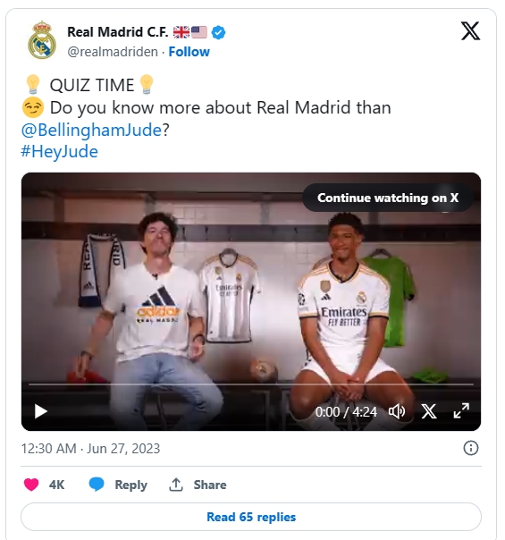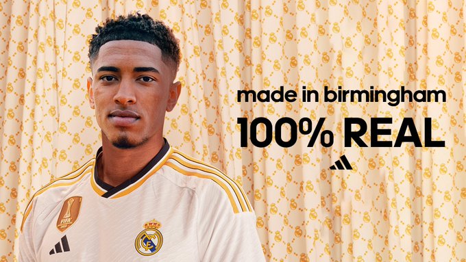 在皇马官宣贝林厄姆加盟前,阿迪达斯在皇马的配合下,准备了一波强力的营销活动,口号就是“伯明翰制造,100%皇马。”(Made in Birmingham. 100% Real)。