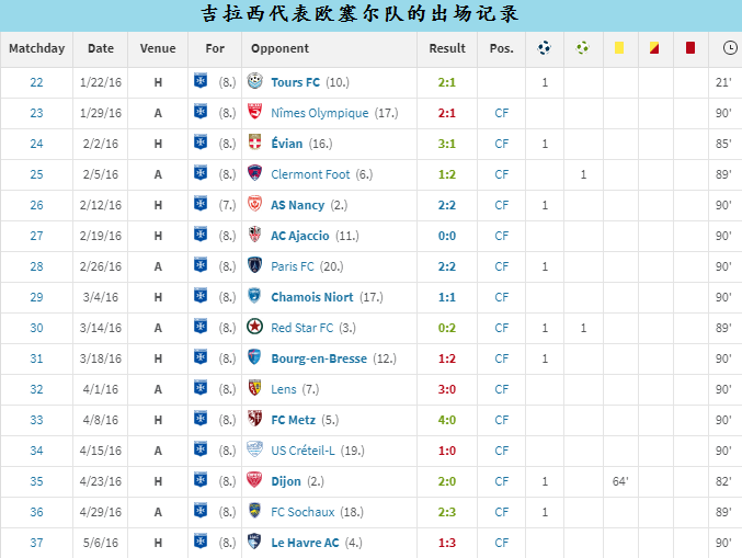 该赛季法乙16场8个进球和2次助攻的表现让吉拉西的身价开始上涨,但里尔并没有留下这名快速成长的中锋,而是以380万欧元的价格将其出售给了德甲球队科隆。