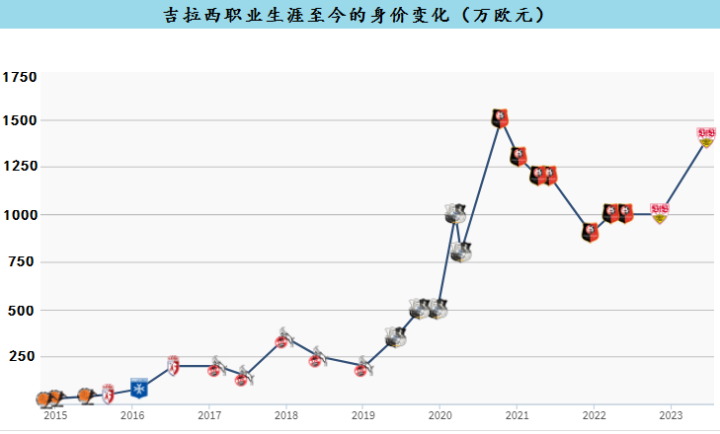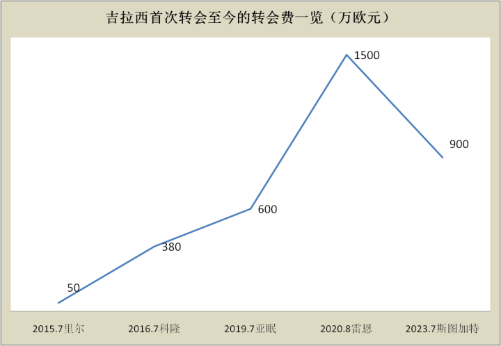这笔交易让里尔仅用一年时间就从吉拉西身上收获了330万欧元的转会利润。