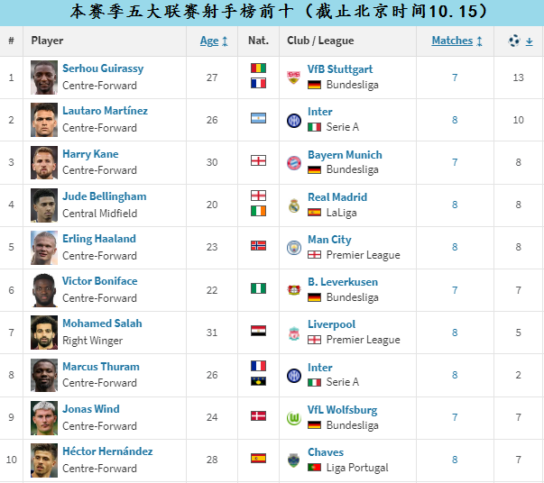 本赛季五大联赛开赛至今最火热的前锋不是上赛季大杀四方的哈兰德、也不是转投拜仁的凯恩,而是此前默默无闻的几内亚前锋吉拉西,这名27岁的斯图加特中锋在本赛季前7轮联赛中打进13个进球,目前领跑五大联赛射手榜。