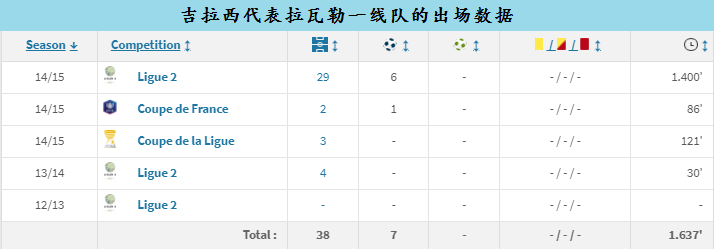 从拉瓦勒到里尔再到科隆,2013年到2019年1月份月的5年半时间里,吉拉西共计只有29次顶级联赛出场,只收获了4个进球。
